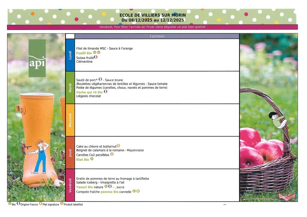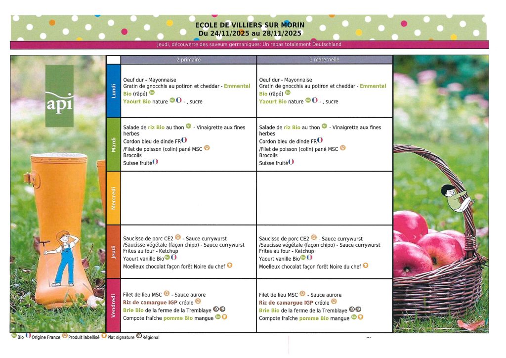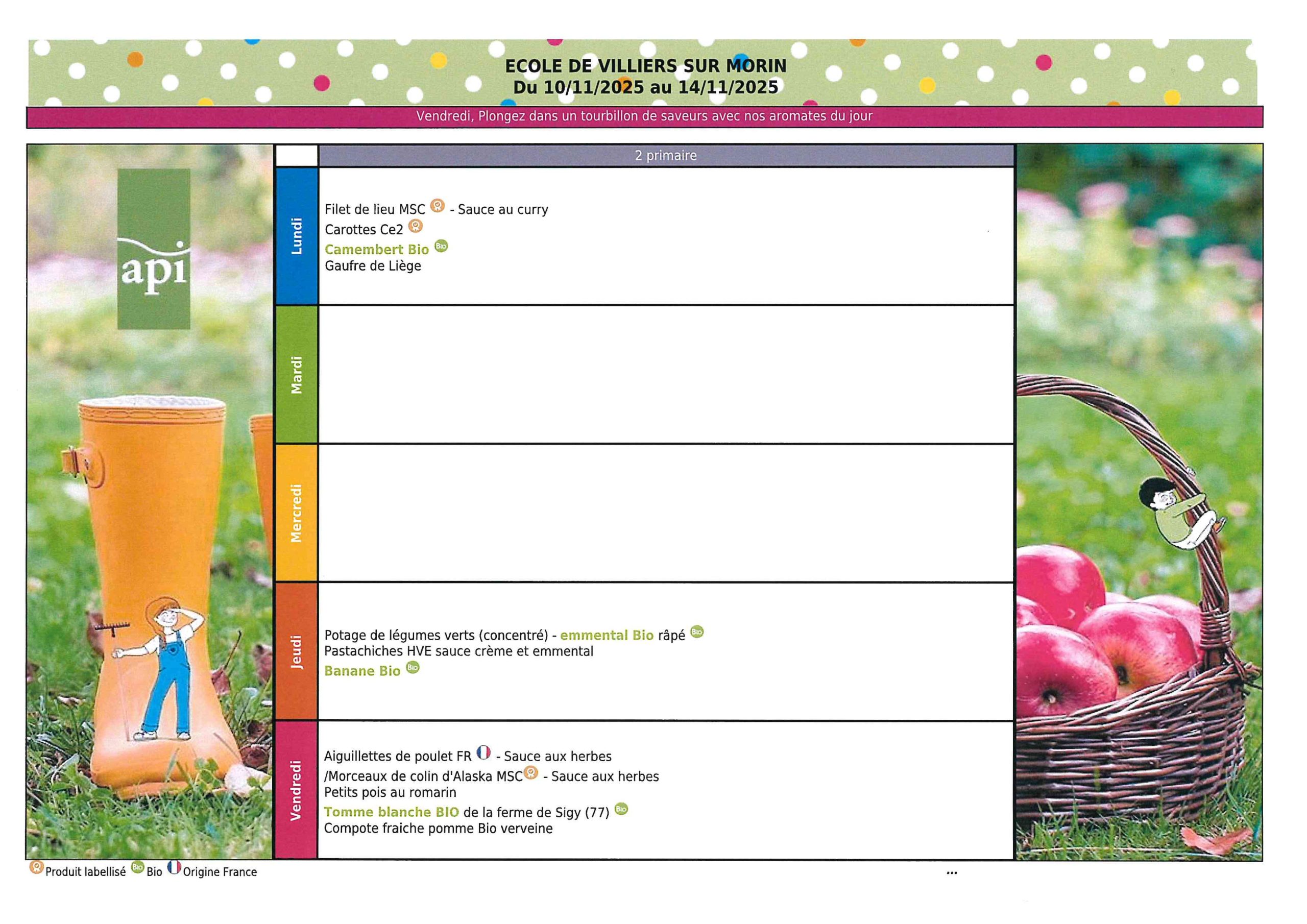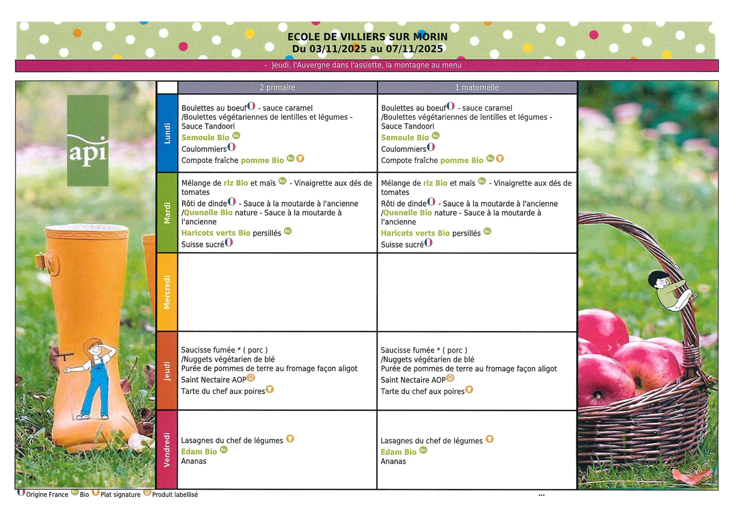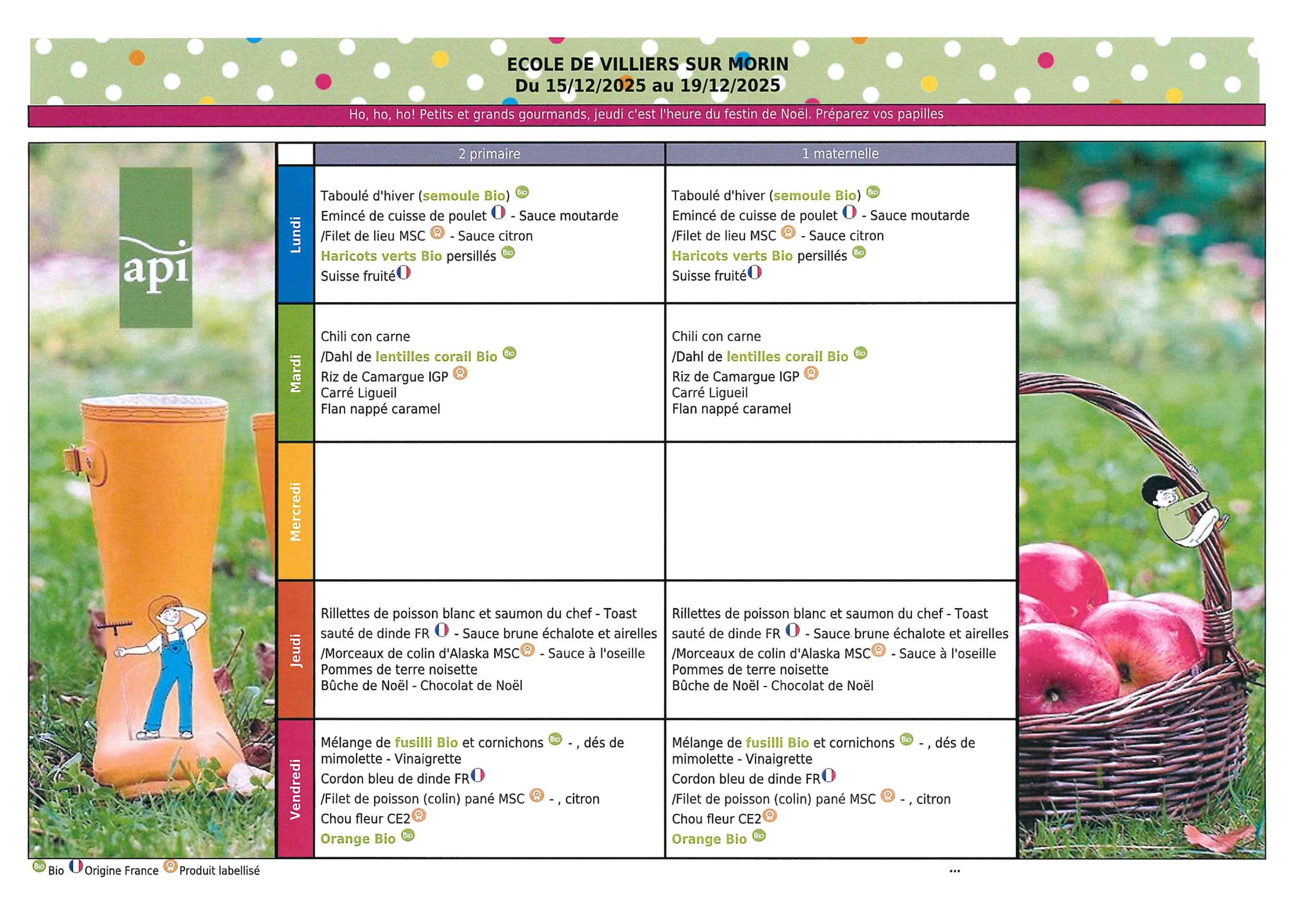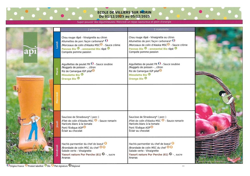 Les menus peuvent être modifiés en fonction des approvisionnements