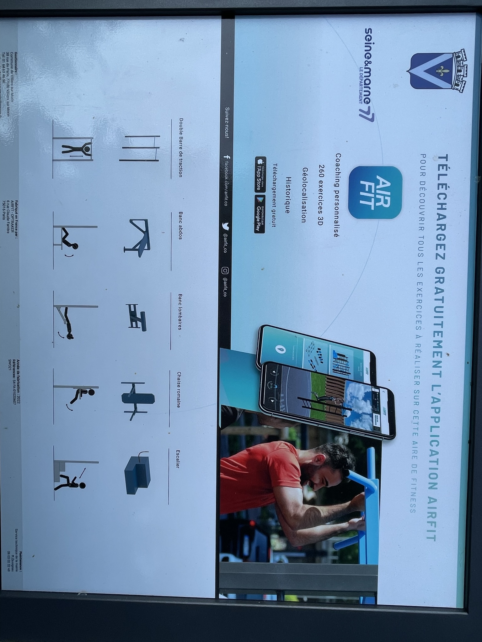 Une application mobile de coaching sportif, est disponible pour accompagner les usagers dans la prise en main des équipements, et garantir une pratique en toute sécurité. : AIRFIT